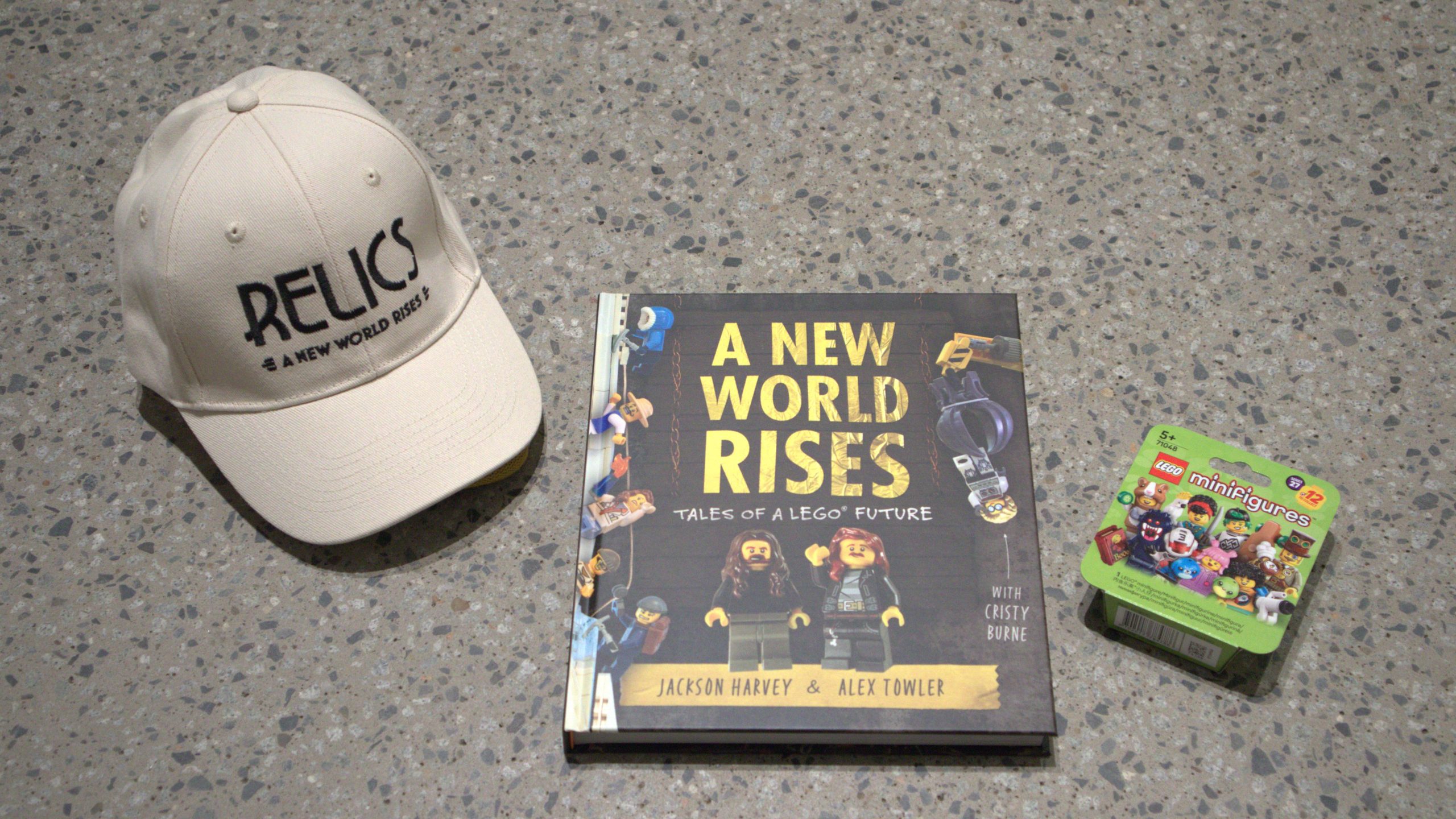 The prize pack features a RELICS cap, RELICS book – A New World Rises: Tales of a LEGO Future, and your very own LEGO® Minifigure!